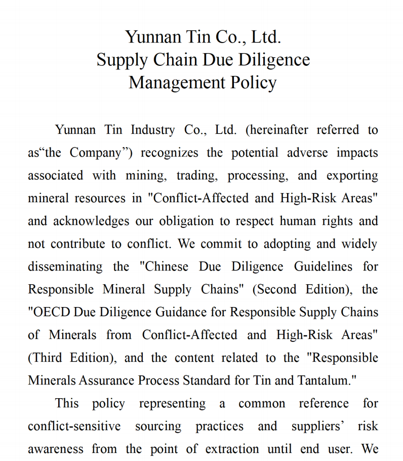 ©Copyright Yunnan tin Limited by Share Ltd All rights reserved.