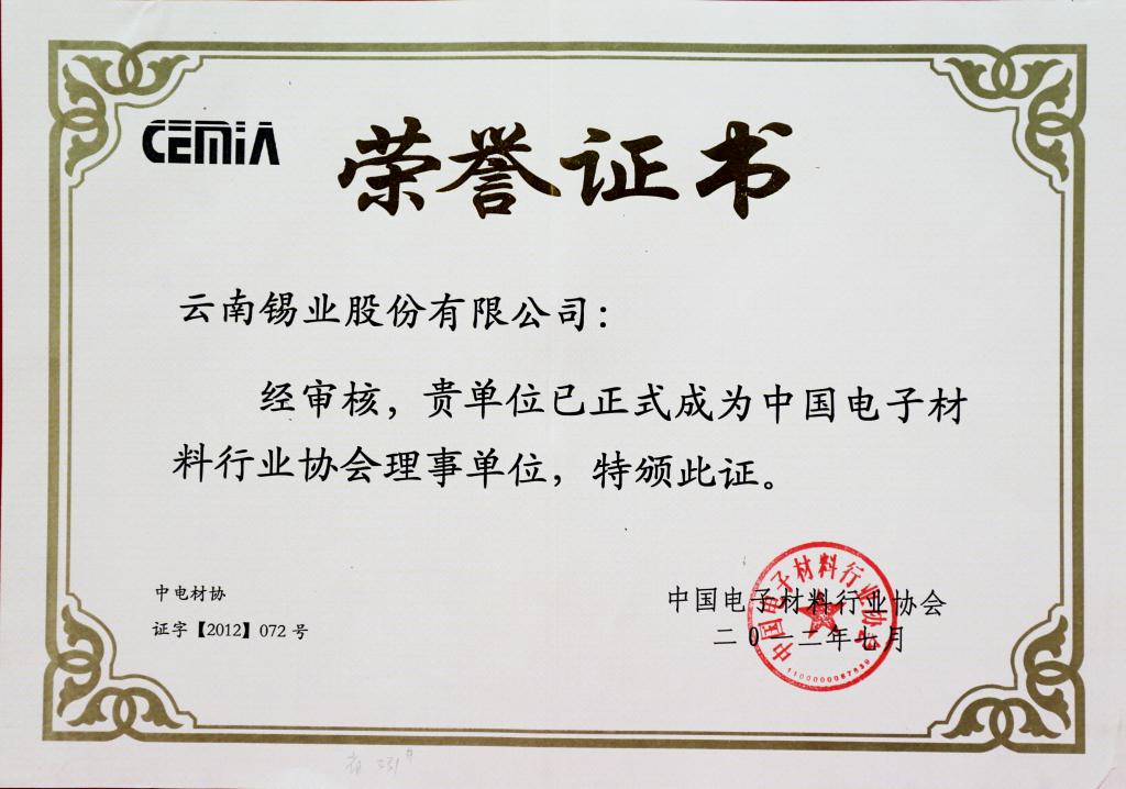 正式成为“中国电子材料行业协会理事单位”