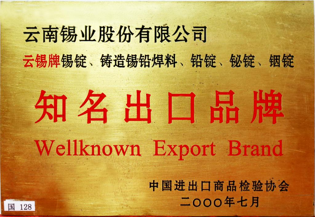 云锡牌锡锭、铸造锡铅爆料、铅锭、铋锭、铟锭为中国知名出口品牌