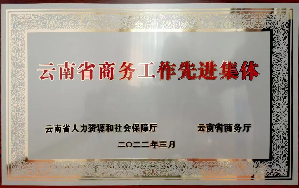 2022年,76net必赢官网荣获“云南省商务工作先进集体”荣誉称号