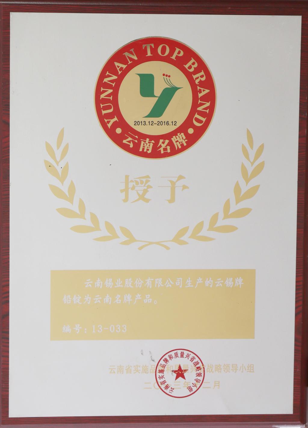 云锡牌铅锭为云南名牌产品