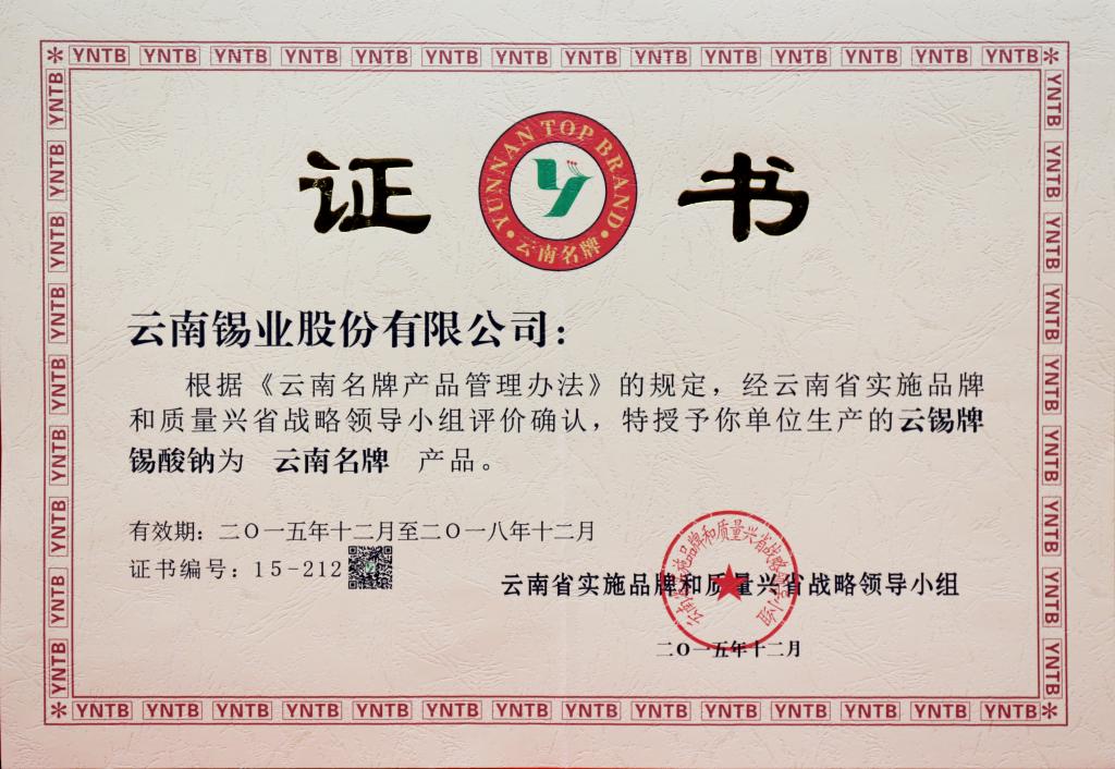 硫酸亚锡、锡酸钠为云南省著名商标