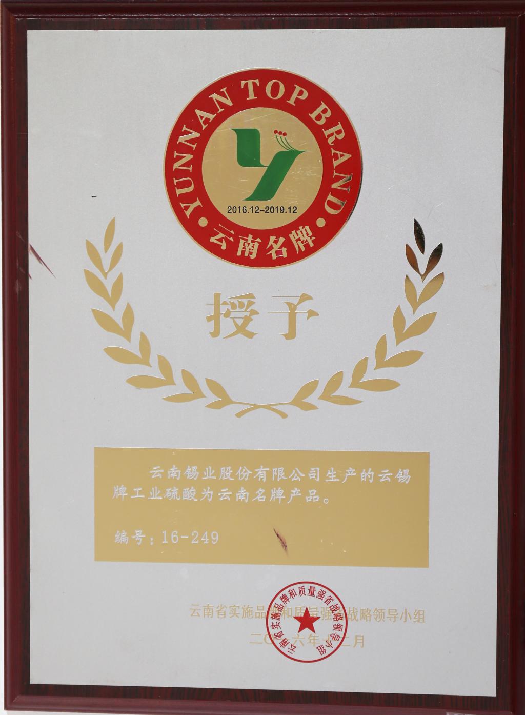 云锡牌工业硫酸为云南名牌产品