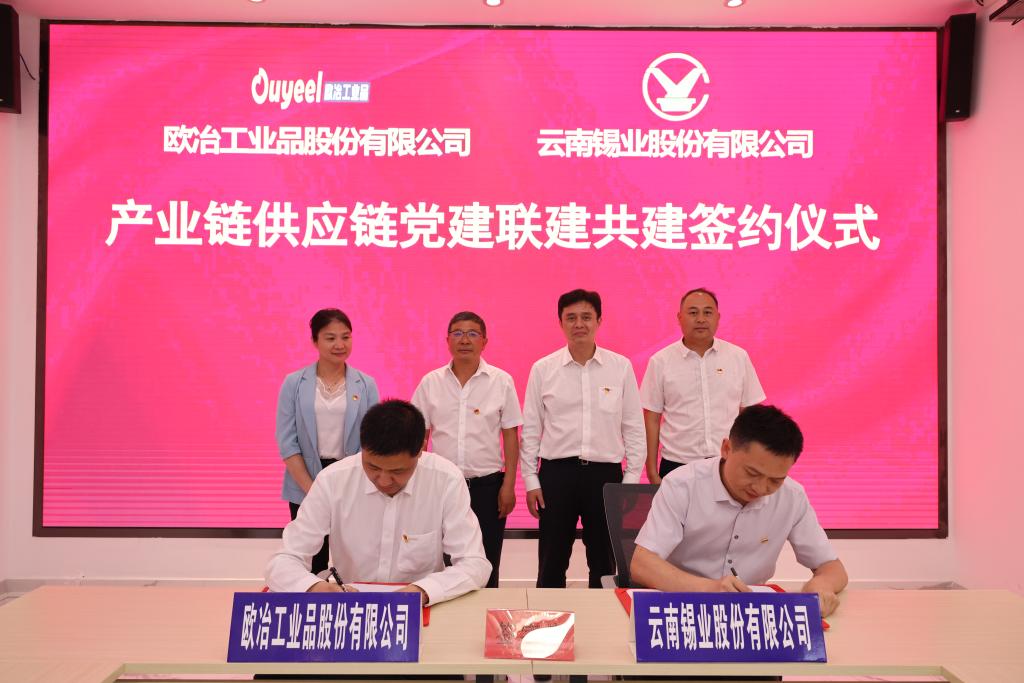 张扬和欧冶工业品党委副书记、纪委书记、工会主席谈爱国代表双方党委签订党建共建协议,张扬对双方业务合作历程和2024年党委共建计划作全面介绍。双方将以联建共建为纽带,进一步提升党建工作质效,共同推进镀锡产线产出的锡泥资源回收再利用,实现锡的全生命周期管理,共建绿色低碳供应链,充分发挥双方购销单元、生产单元党建优势资源共享效应和各自所在行业市场分析优势,做好上下游政策和行业供需信息共享,加强锡粒等锡制品全流程库存管理,着力降本增效,优化全链条送货、收货管理、缩短付款周期等方面工作,共同推动党建共建成果转化为企业高质量发展的强大动力。