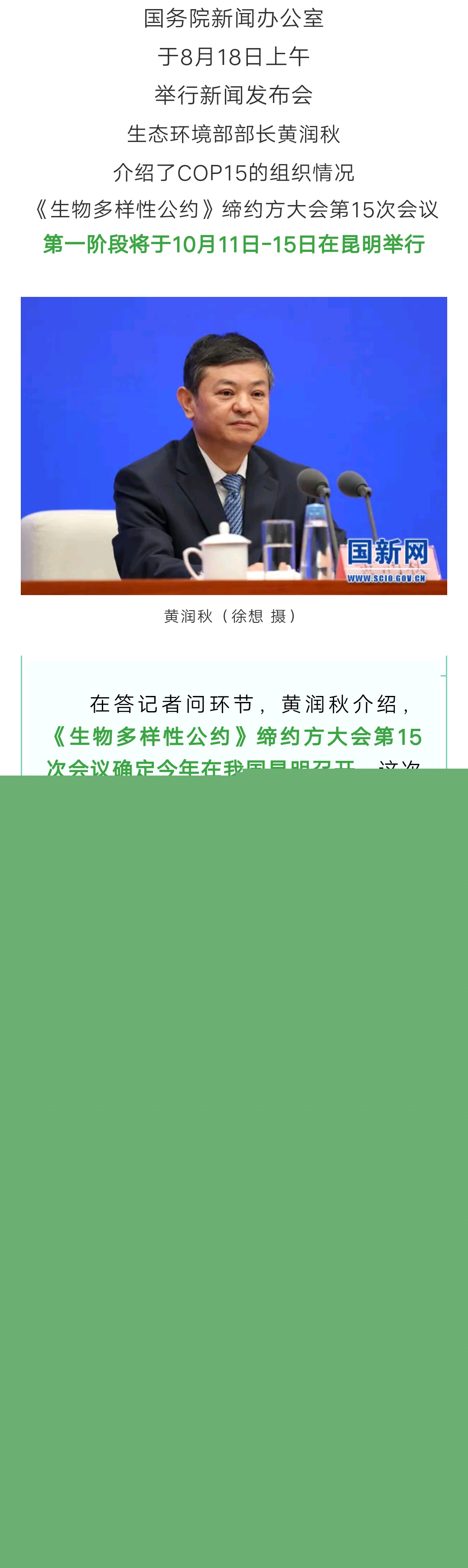 【COP15春城之邀】COP15第一阶段将于10月11日-15日在昆明举行