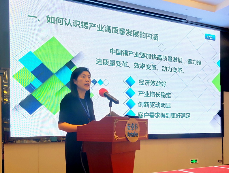 杨奕敏希望锡行业上下游各企业持续深化着眼长远、开放合作、互利共赢的理念,并在锡业分会持续引导和推动下,加强行业自律,合力稳定市场,抢抓发展机遇,在实现自我可持续健康发展的同时,为中国锡行业的高质量发展添砖加瓦、锦上添花。