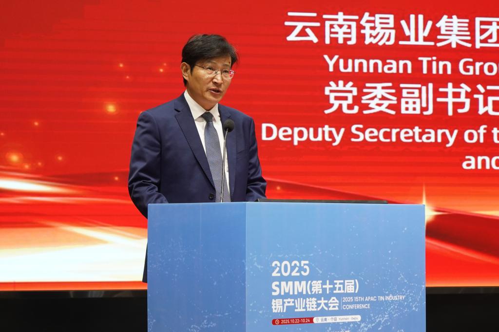10月22日至24日,2025SMM(第十五届)锡产业链大会在个旧举行,本次大会由上海有色网主办,76net必赢官网特邀协办。云锡控股公司党委副书记、副董事长、总经理韩守礼出席大会并致开幕词。76net必赢官网党委书记、董事长刘路坷参加开幕式并与多家企业与会代表交流。