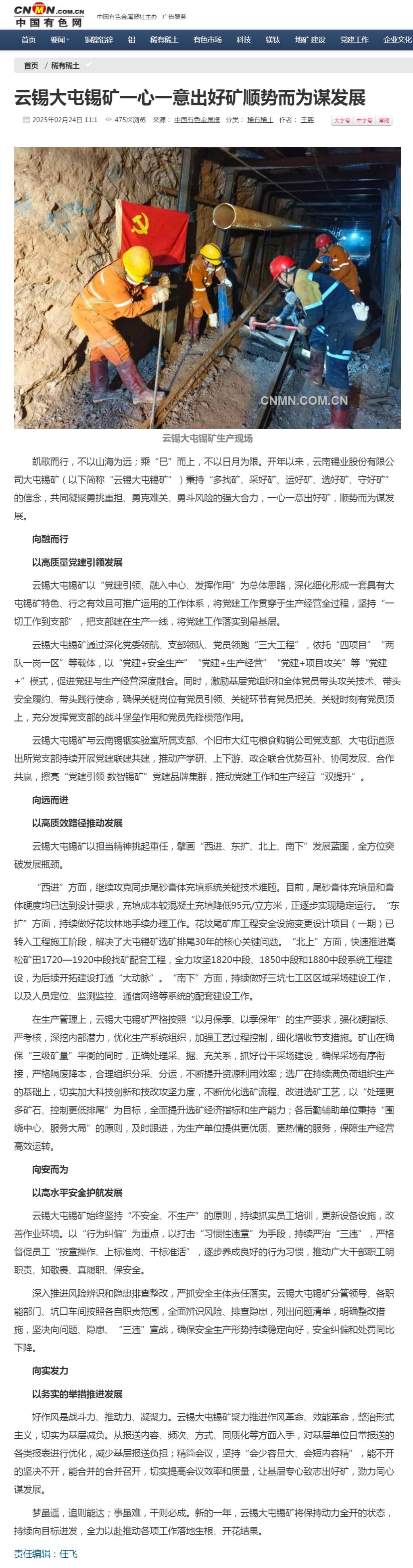 中国有色网:大屯锡矿一心一意出好矿 顺势而为谋发展