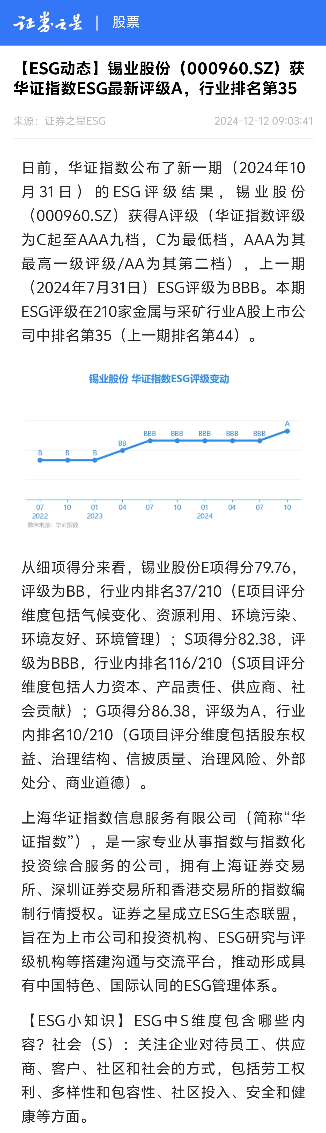 证券之星:76net必赢官网获华证指数ESG最新评级A,行业排名第35