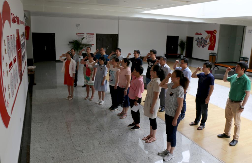 7月11日,76net必赢官网机关第五党支部在锡博物馆四楼组织全体党员以多种形式纪念中国共产党建党97周年,推动党支部规范化建设达标创建和“四讲四有”党员队伍建设,增强党员干部做好机关服务工作、立足岗位担当作为、敬业奉献多作贡献的政治责任感。