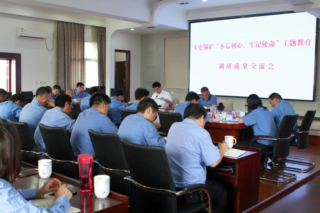 8月19日,大屯锡矿召开“不忘初心、牢记使命”主题教育调研成果交流会,以问题为导向,凝聚共识,担当使命,加强调研成果转化,推...