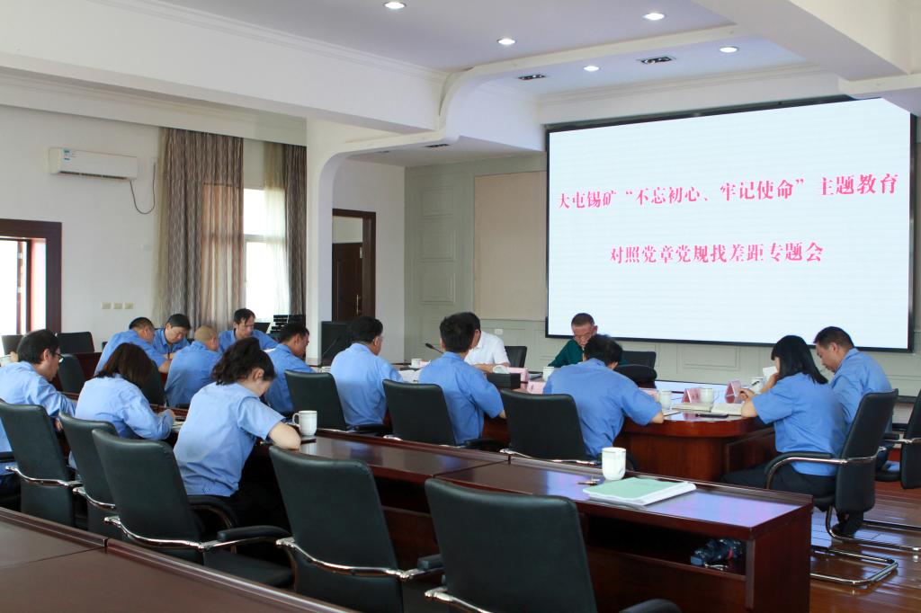 8月20日,大屯锡矿召开“不忘初心、牢记使命”主题教育对照党章党规找差距专题会,严格对照党章党规,以正视问题的自觉和刀刃向内...