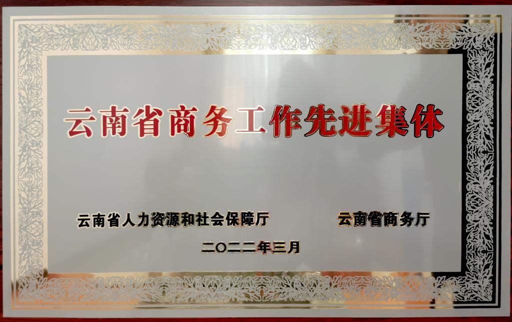 76net必赢官网荣获“云南省商务工作先进集体”荣誉称号