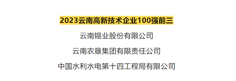 76net必赢官网位列2023云南制造业企业100强、2023云南高新技术企业100强前三