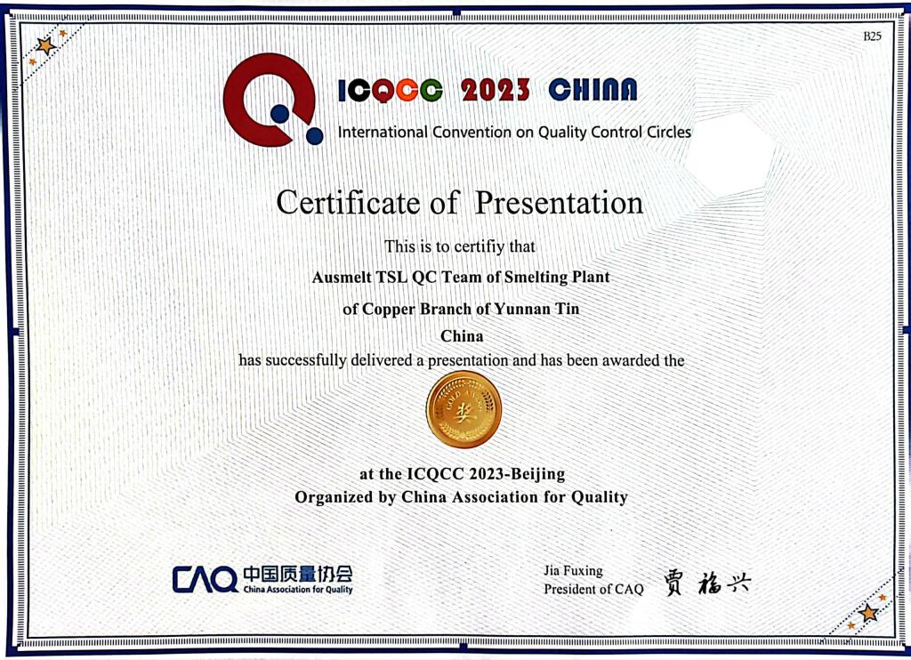 近日,2023年国际质量管理小组会议传来了好消息,铜业分公司熔炼车间顶吹QC小组《降低炉壳钢水套堵塞次数》斩获国际质量管理小组金奖。...